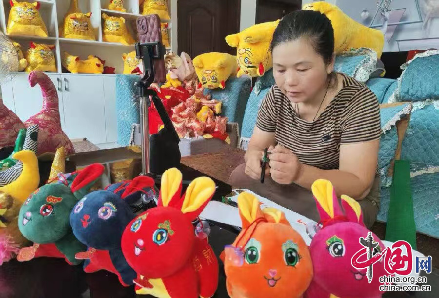 张怀霞就是在当地党委、政府和驻村干部的引导下,紧跟网络发展步伐,支起手机开起直播。镜头中,从事布老虎制作的村民用面对面地飞针走线,为顾客解疑释惑、推介销售,赢得了消费者的信任。“农村电商平台拓宽了布老虎销售渠道,越来越多的年轻人喜欢上了这些传统工艺品,并把它们作为伴手礼或家居工艺品,日销售量最高可达300余只,销售额近万元。”张怀霞说。