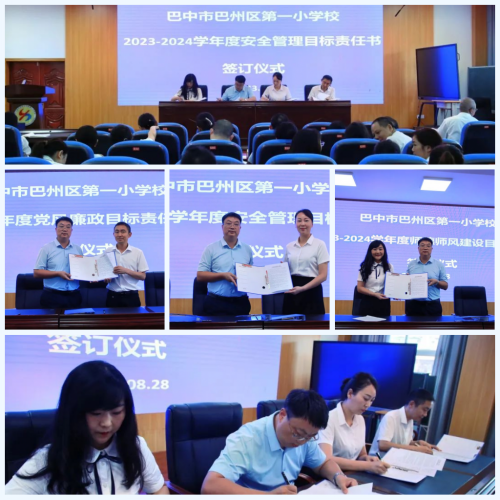 学校党总支书记、校长唐振华分别与各校区执行校长、各分管领导、各级部长签订党风廉政建设责任书、师德师风建设责任书及安全责任书,进一步明晰岗位职责,压实工作责任,传导管理压力,凝聚管理合力。