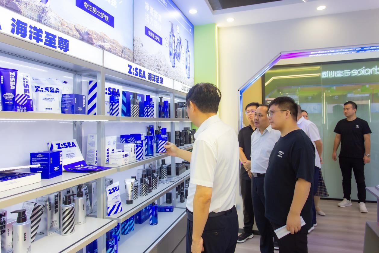 虎荣鑫区长一行先后参观了梦尔达科技集团产品展厅、品牌荣誉及各楼层办公区,详细了解了梦尔达科技集团的业务布局、旗下热销产品、研发生产过程及直播基地运营等方面情况。并对旗下品牌-海洋至尊产品的科研情况及核心成分“安诺因”进行了深入交流。