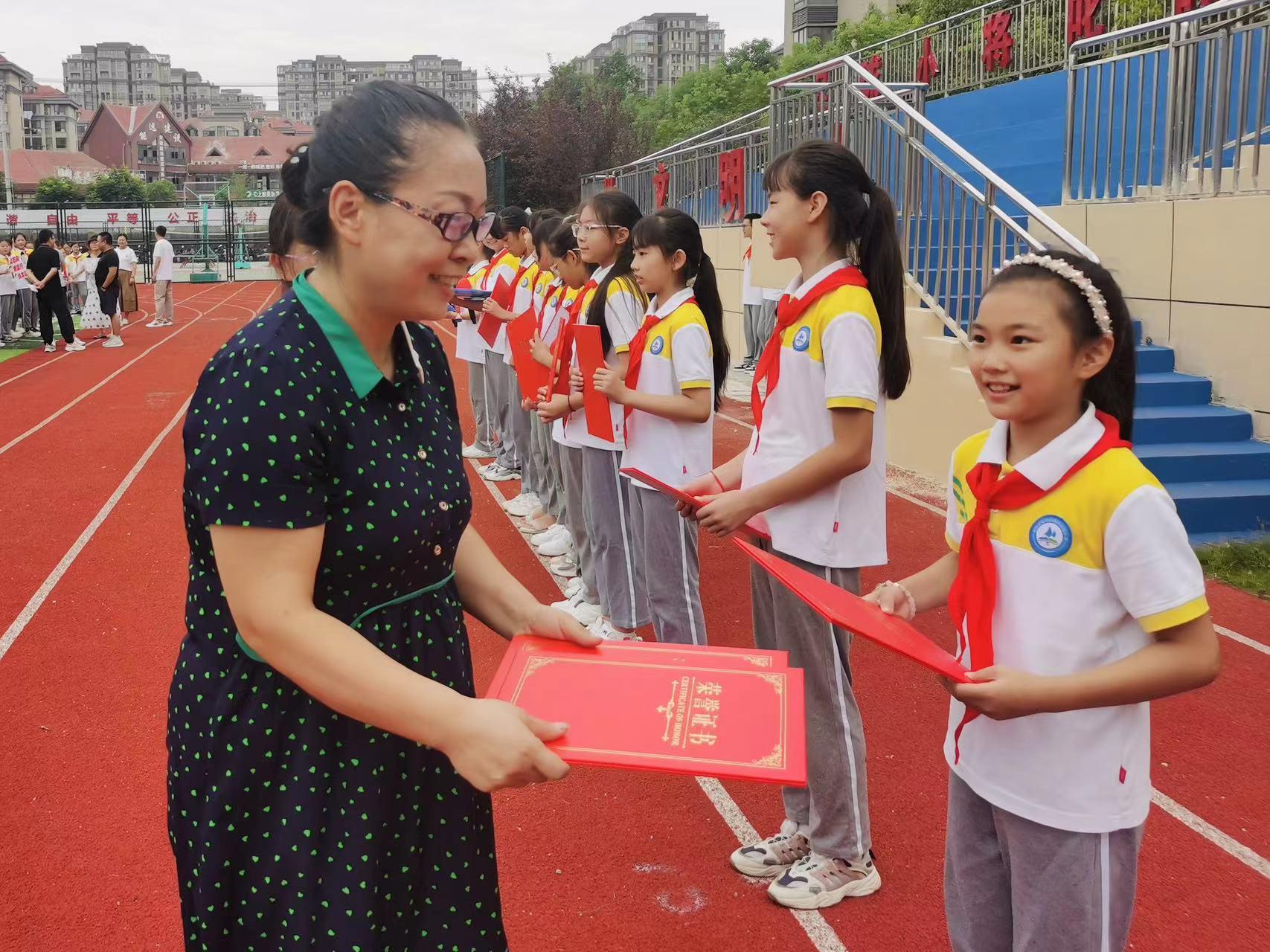 活动中,校领导还为在上一学期中参加我校体育艺术比赛的学生颁发荣誉证书,他们分别是获得滁州市舞蹈大赛一等奖、滁州市女子足球冠军、滁州市羽毛球团体一等奖的优秀学生,这些成绩的获得离不开老师的辛苦付出,更离不开他们的精彩表现。