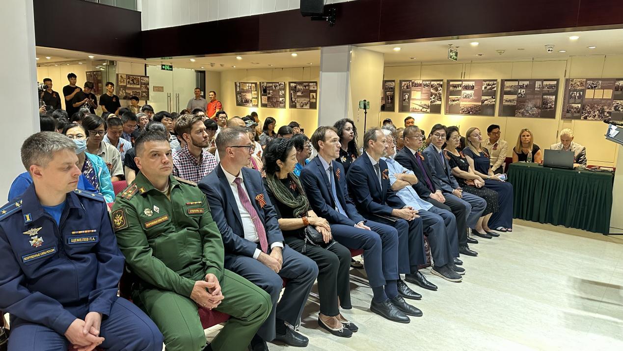 纪念会议上,俄罗斯文化中心启动了由俄罗斯胜利博物馆制作并由俄罗斯文化中心翻译成中文的展览《“城堡”落日余晖》的开幕式。