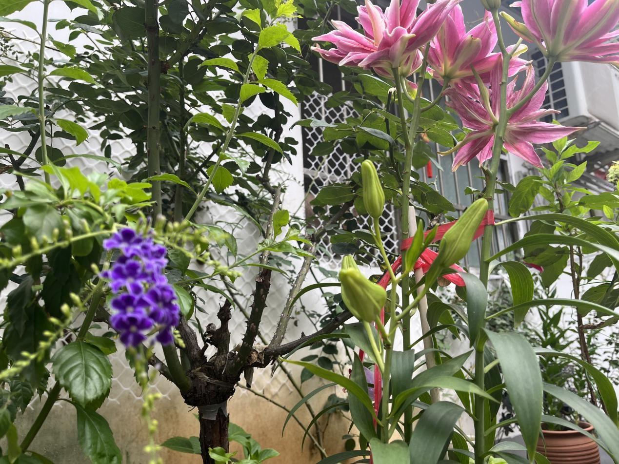 说干就干,陈忠凤、喻梅、赵正权等一批院内热心居民迅速响应号召,主动带头清理花坛杂草,并结合自身种植经验和小区实际情况,分类分区种植各种花草。四月的芍药,五月的蔷薇,六月的栀子,七月的绣球,不同的花卉在种植后,也显出各自独特的韵味。独乐乐不如众乐乐,花色鲜艳的蓝雪花,蜿蜒绵亘的凌霄花,还有风雨兰等花期较长的花卉被陈忠凤等一批热心居民安排在院内大家都看得见的地方,随着时间流逝,这里也逐渐形成了小区的共享花园,与此同时,参与到共享种植的居民也越来越多,大家共同修枝、拔草、培土、浇灌,在交流养花心得和经验的同时,大家的感情也变得更融洽了。如果有时因为出远门等原因不方便打理,只需告诉邻居们,他们门前的花草就会有一群“守护者”主动帮助浇水、看管、照顾,保证植株的正常生长不受影响。