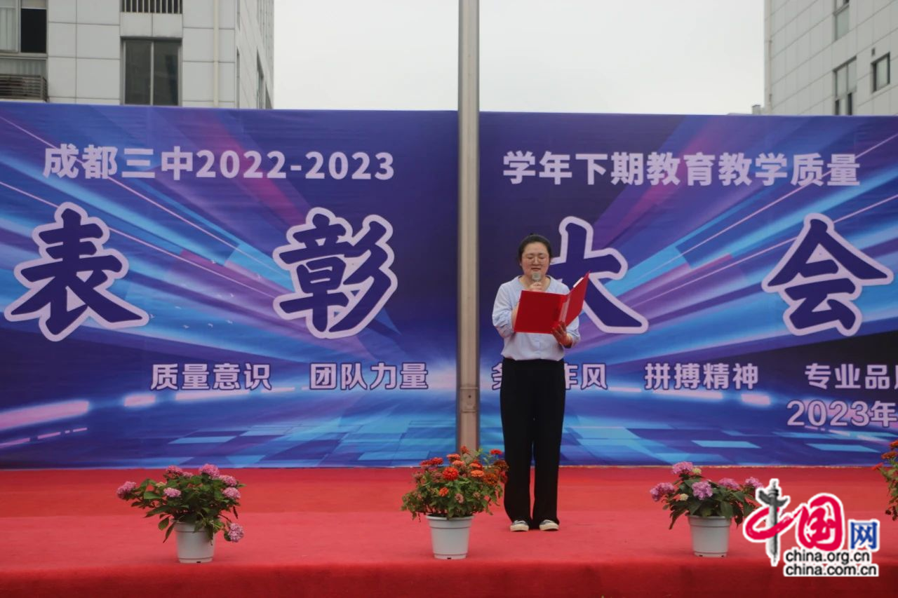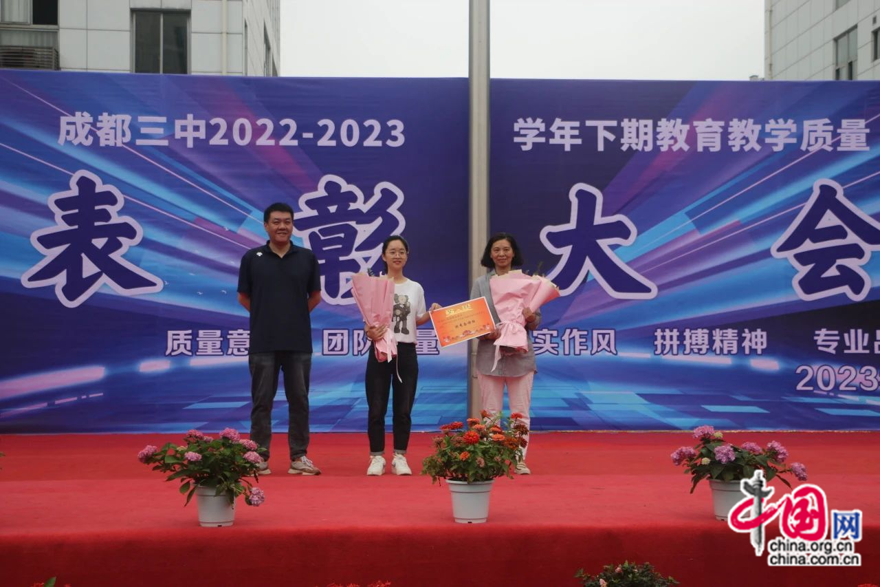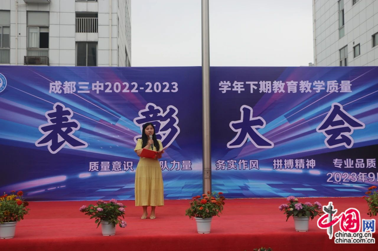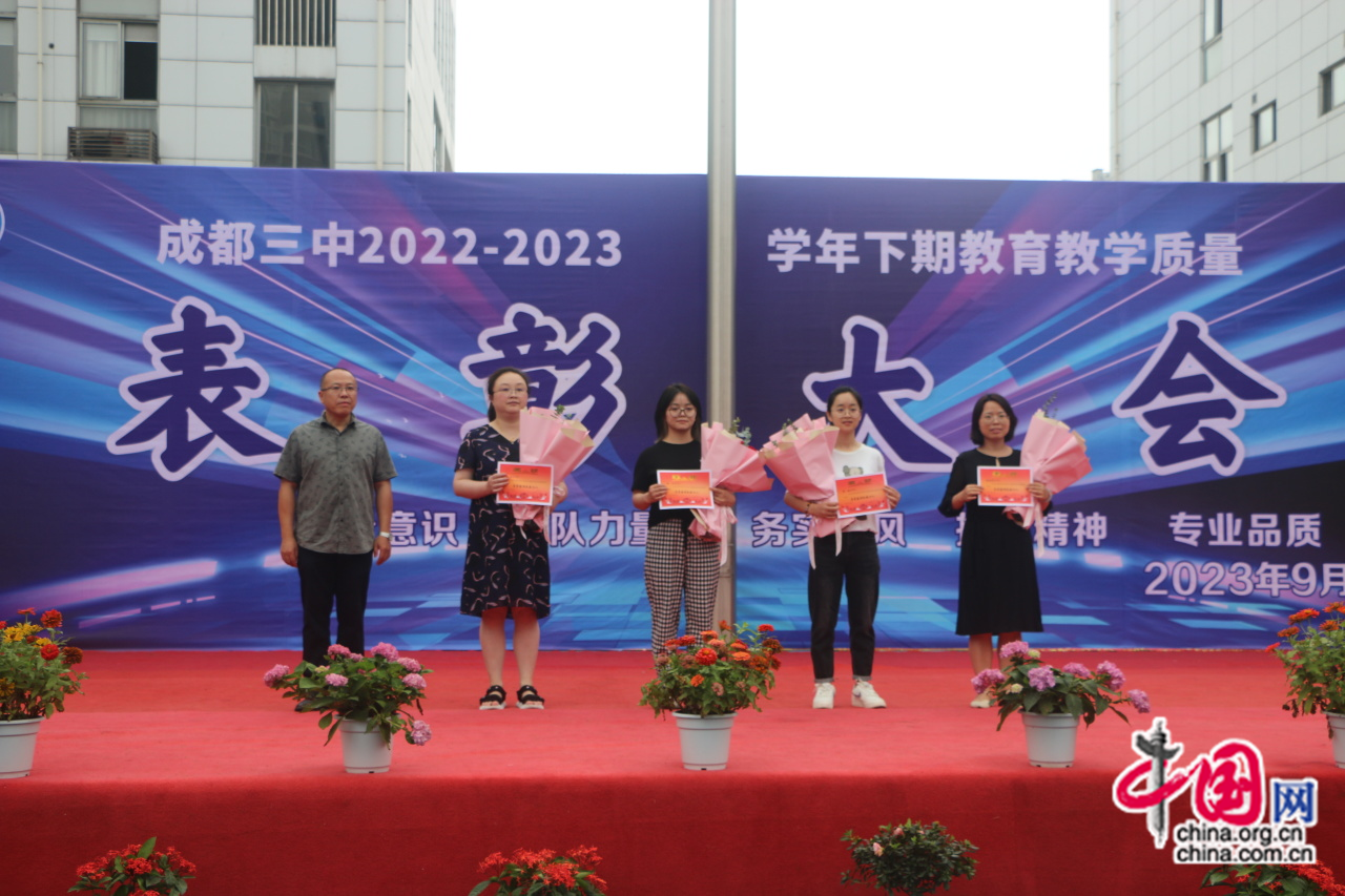 为激励全体教职工奋发向上,继续在教育事业发光发热,9月19日,成都市第三中学隆重举行了2022-2023学年度下期教育教学质量表彰大会,对在上学期取得优异的教育教学质量的教师进行了表彰。