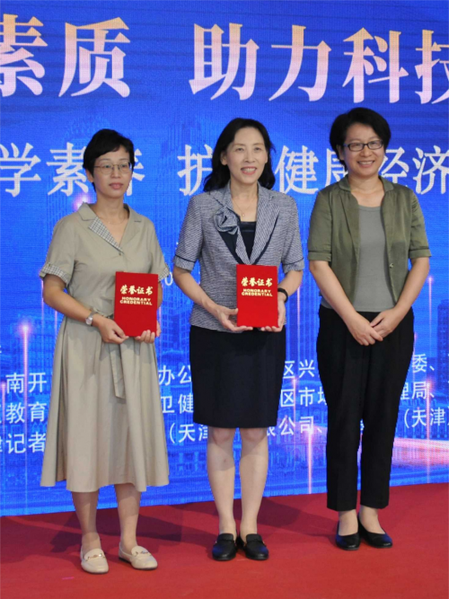 与会领导们共同启动南开区全国科普日活动,推进“天开之核 科普之源”四全科普品牌进社区、进学校、进企业、进商圈,多角度呈现科技创新为公众生活带来的新变化、新面貌、新风尚,开启全域科普七进序章。