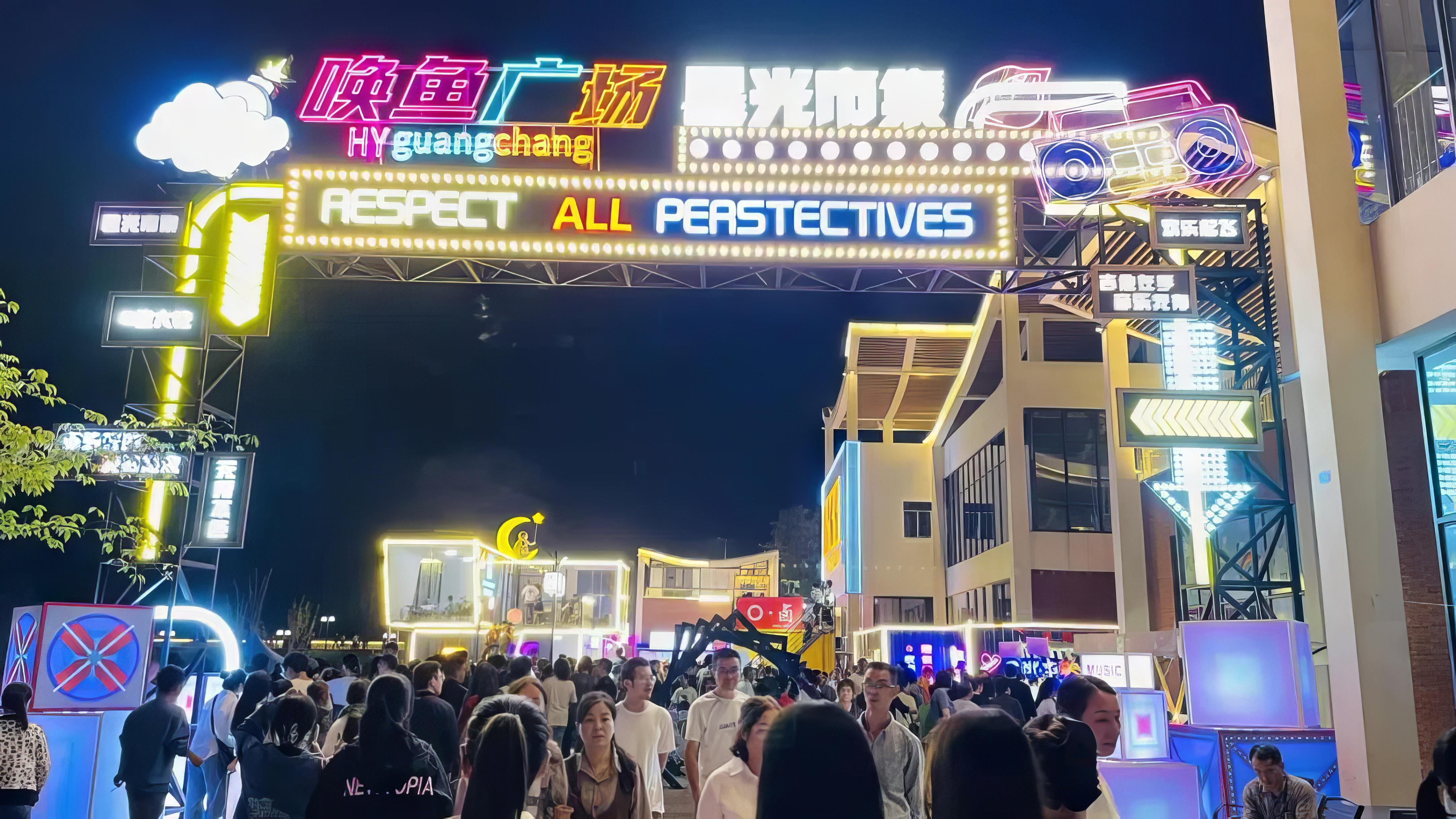 9月29日中秋节,夜幕降临,五彩的霓虹灯重新勾勒出青神的线条。在唤鱼公园,集潮流与炫酷于一体的集装箱夜市街区——星光市集,将节日的氛围感拉满,赋予游客全新的感受。