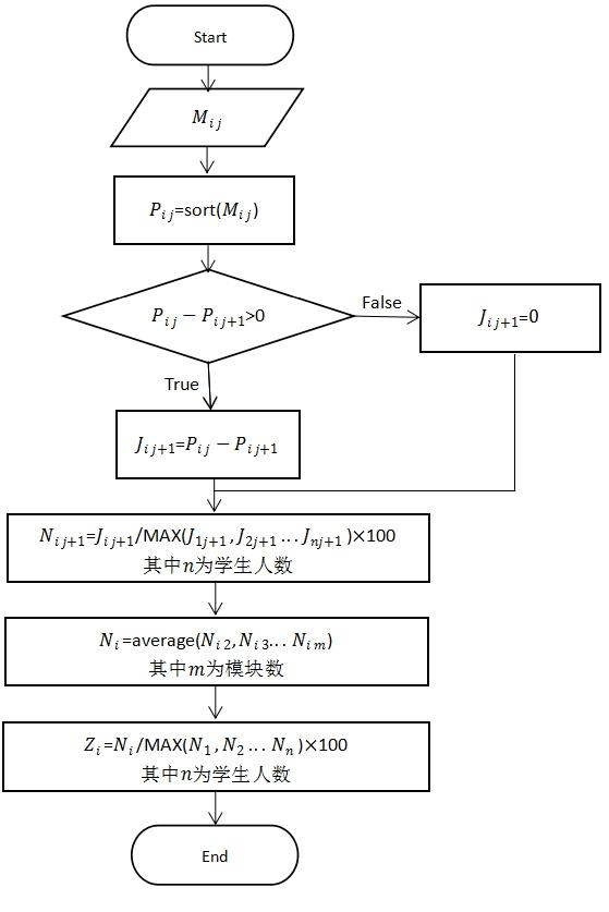 步骤一 对学生模块成绩Mi j按降序排序,得到学生排名Pi j