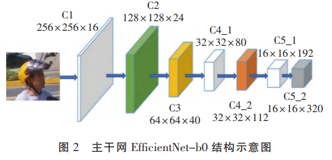 随着深度学习技术的不断发展,目标检测算法取得了长足的进展,出现了以R-CNN为代表的two-stage目标检测算法,如R-CNN、Fast R-CNN、Faster R-CNNH。采用two-stage目标检测算法时,网络先通过预处理方法在预测图片上生成若干目标候选框,再采用卷积神经网络训练参数进行样本分类,训练和检测精确度高,但计算成本较大,影响网络的训练和检测效率。随后出现了YOLO、SSD、RetinaNet等为代表的one-stage目标检测算法。这些算法直接将目标边框定位问题转化为回归问题处理,从而实现端到端检测且无需候选框,网络的训练和检测效率高,但精确度会降低。这些方法极大地提高了信息的收集速度、处理能力及传递速度,为道路交通安全相关的智能检测提供了技术和理论支持。文献[11-15]对行人、骑行人(普通自行车、电动自行车和摩托车)和汽车等目标的检测已经达到很高的精度;文献[16-22]基于Faster R-CNN、YOLOv3等算法,提出了自动检测工人安全头盔佩戴行为的方法,平均检测精确度达到85.5%~90.9%。国内外学者针对骑乘人员安全头盔佩戴行为也进行了自动检测方面的研究。Dahiya等和Vishnu等采用Fast R-CNN目标检测算法实现了对自行车和摩托车骑乘人员安全头盔佩戴行为的自动检测,但检测效率较低。为了提高检测效率和实时性,Siebert等基于RetinaNet目标检测算法,利用多尺度特征金字塔和focal loss,实现了摩托车骑乘人员安全头盔佩戴行为的自动检测,在提高检测速度的同时,也能保证较高的检测精度。刘琛等基于SSD算法,以RFB Net模型为基础,采用余弦衰减学习率优化网络学习能力,提出了一种适用国内场景的摩托车骑行人安全头盔佩戴行为自动检测方法。在实际道路路段和交叉路口,安全头盔佩戴行为检测平台的计算资源和内存是有限的;然而,传统目标检测算法对计算资源和内存的消耗较大,需要探索更便捷和高效的网络架构。同时,考虑到视频监控的视角问题,骑行人会由远及近地经过检测平台,导致视频画面内会有相对小的骑行人目标;传统目标检测算法无法有效地处理多尺度特征,容易检测到大目标、而忽略小目标,导致检测范围和精确度的减小。