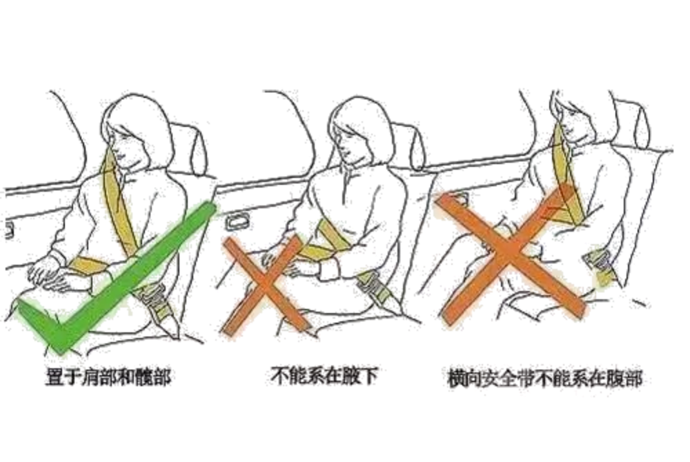 使用时要保证其在腹部以下,横过髋关节,舒服且紧密地贴合身体。这样的使用方式可以使事故发生时产生的冲击力作用在骨骼上而不是柔软的内脏器官上,避免内脏受到严重伤害!