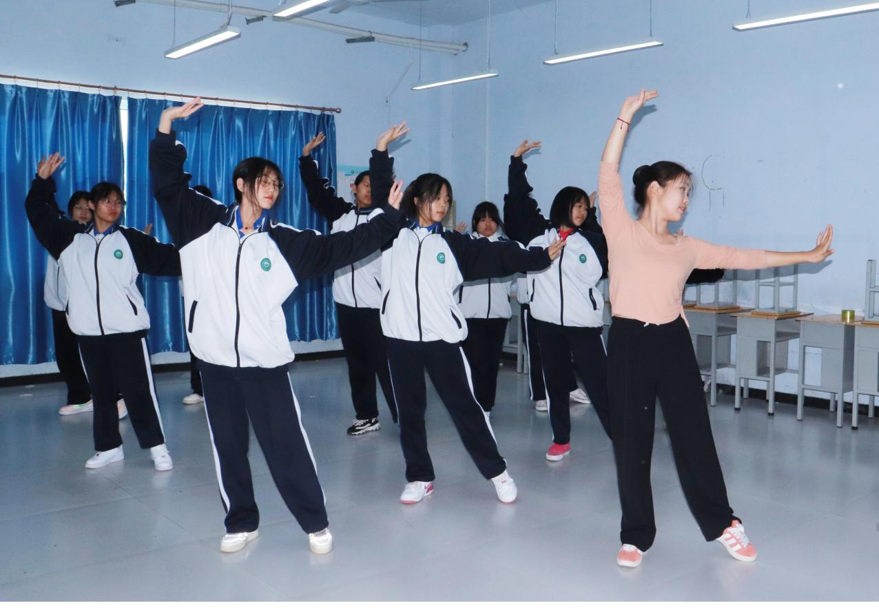 舞蹈特长生。同学们在节奏之中,去感受身体的律动。古典舞、民族舞、爵士、拉丁、街舞......内容丰富、形式多样,了解不同的舞蹈类别,发掘学生们不同的兴趣爱好,以培养学生多方面发展,彰显着学生青春活力以及舞蹈的魅力。