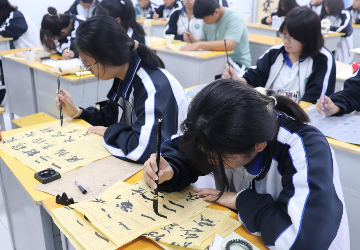 书法特长生。书法教室充斥着浓浓的墨香,横竖撇捺之间学生们行笔顿挫有力,他们一笔一划的认真练习,在笔墨之间感受着古代文人的气韵,体会中华美学的魅力。