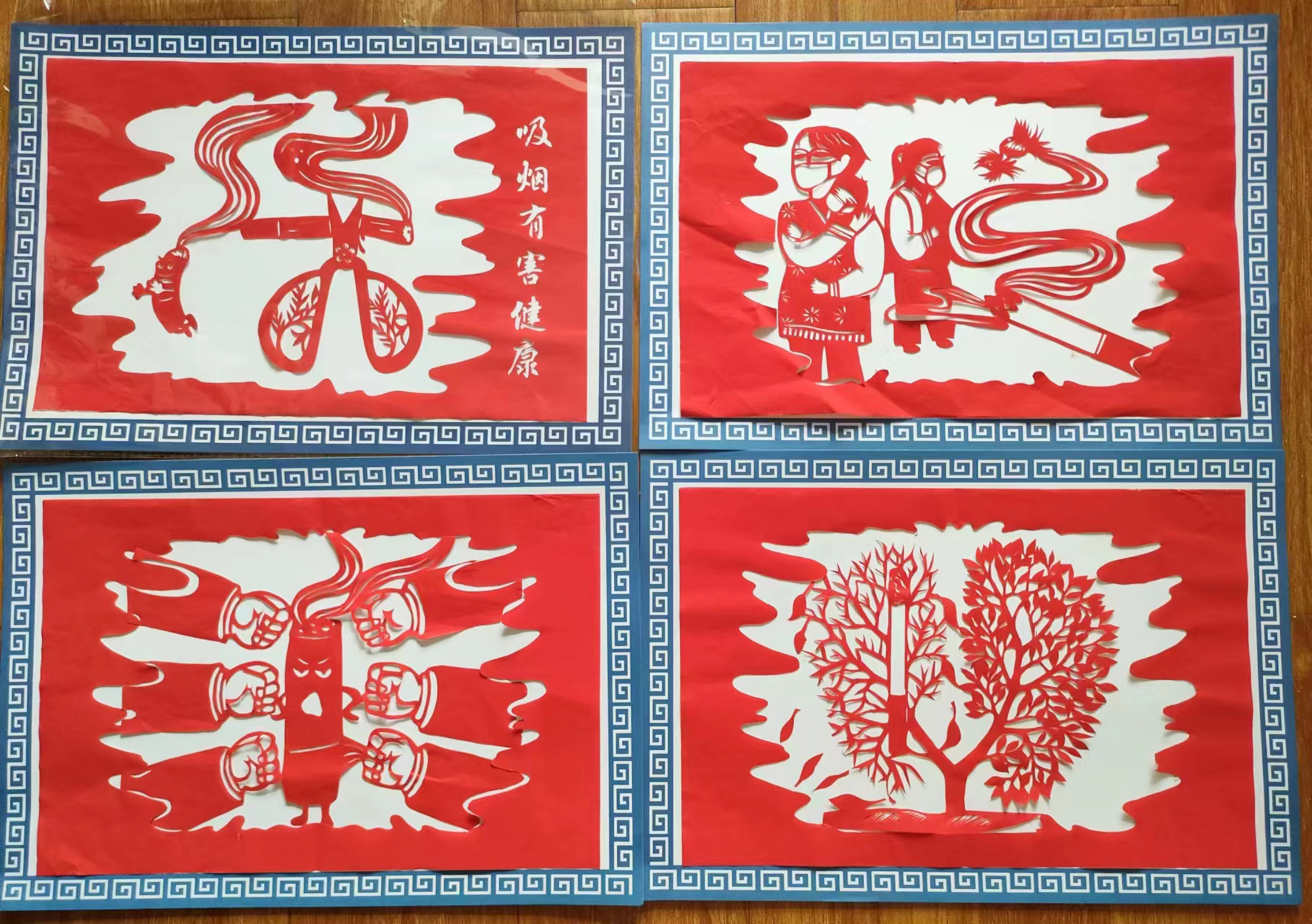 作品采用剪纸手法完成的四副组图作品,表达二手烟的危害,对人肺部的摧残,呼吁大家一起远离烟草,保护自己和家人的健康。
