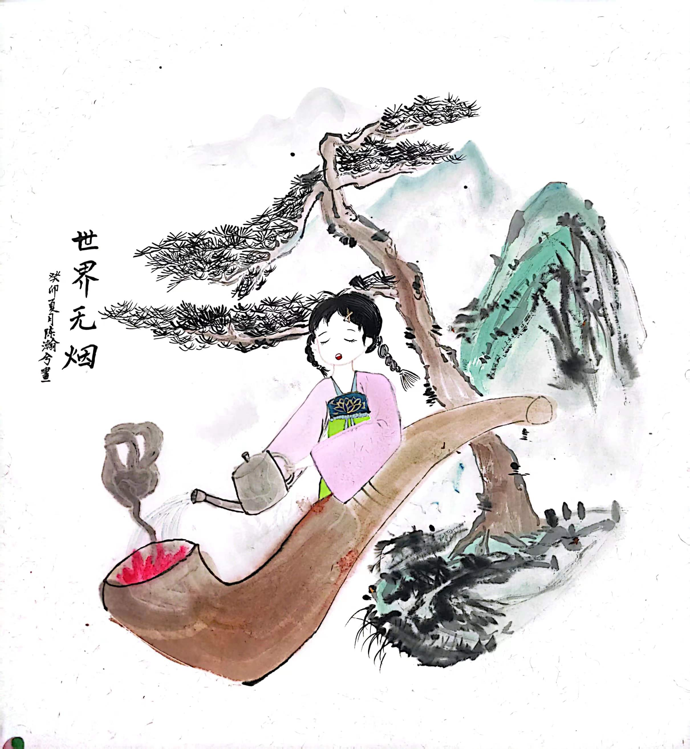 这幅图是以吸烟有害健康展开联系,进行创作的联系。