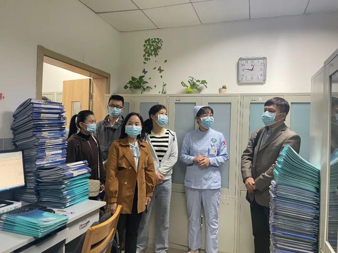 在陈萍副院长的陪同下,葛利辉书记一行首先来到门诊红丝带关爱中心参观交流学习,详细了解科室设置、人员配备、职责分工、运作机制、日常管理、咨询检测、个案精细化管理、志愿服务等工作开展情况。