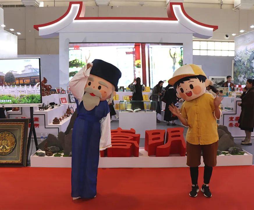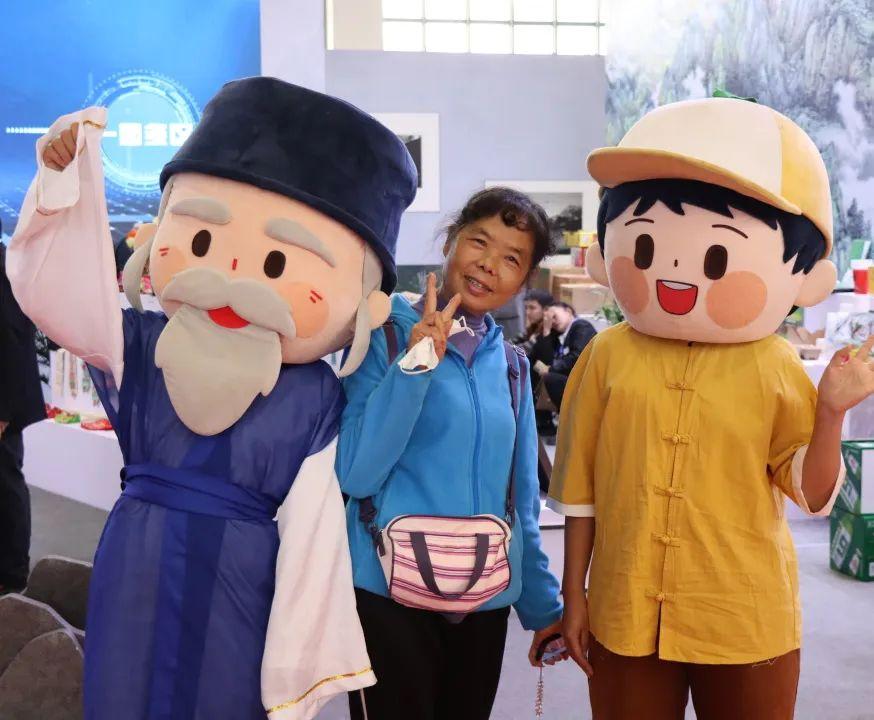 参观展区的市民们纷纷与兰茂小明合照留念,放眼望去在人群中他们也是最出众的“显眼包”。兰茂小明的IP形象深入人心,变成嵩明文创产品赋能文化的生动写照。