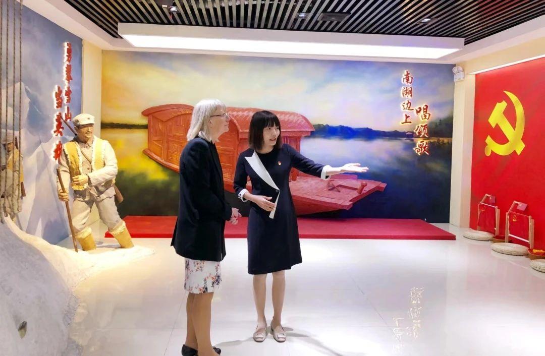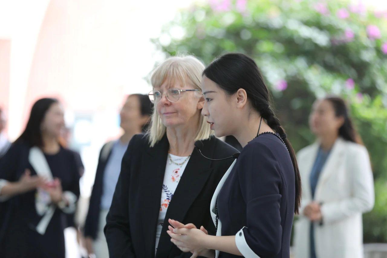走过静谧的林荫道,专家团队在双语解说中了解中外人文交流在盐小发展的历程。通过系列照片,专家团队看到孩子们在文化交流活动中的精彩瞬间,了解到孩子们作为中外人文交流小使者,借助艺术展演推动多彩文明的传承、发展与互鉴。
