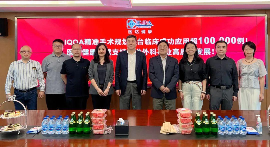 2023年10月20日,IQQA精准手术规划平台临床成功应用病例突破10万例,标志着医达健康以创新高科技全力支持精准外科高质量发展迈上了新台阶。中国工程院院士、清华大学附属北京清华长庚医院院长董家鸿、北京清华长庚医院院长助理、器官移植中心主任卢倩教授、北京清华长庚医院肝胆胰外科闫军教授一行赴医达健康参观指导,与医达健康董事长钱建中博士、常务副总曾小兰博士、副总王阳明、副总孙振敏一同见证了这一重要时刻。