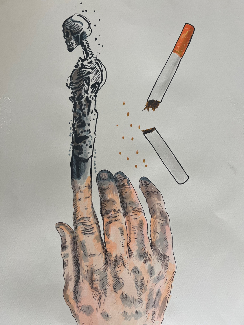 香烟从指尖燃烧,付出生命的代价,告诫人们无烟的意义与迫在执行。