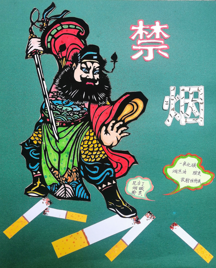 2、神话传说中的钟馗来到人间脚踩香烟化身为禁烟大使,使作品立意高远,形象生动,简洁大方,起到很好的警示效果。