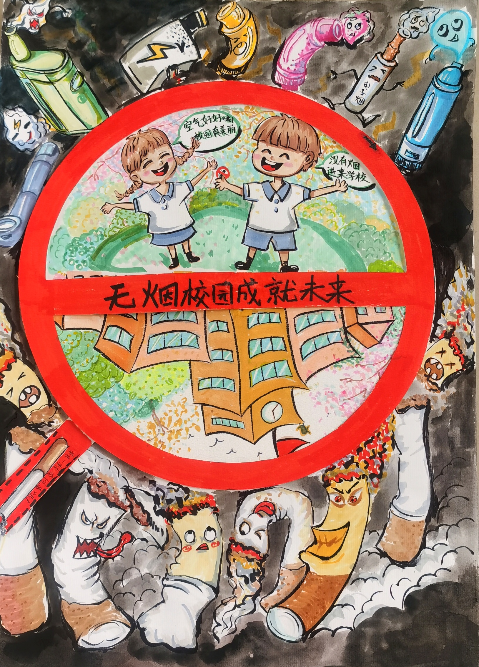 我的灵感源于学校多处的禁烟标识,电子烟或香烟都严禁入校园。画面转动还可以出现不同的画面哦!我相信,守住校园这片无烟“净土”。共同创造一个更加健康、和谐、干净、美丽的无烟校园,能成就更好的未来!