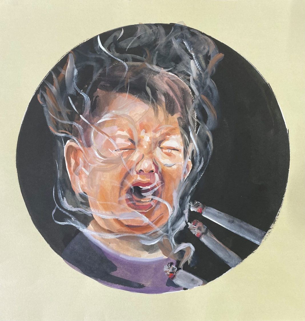 为了家人的健康,大家都不要吸烟吧,不要让孩子哭泣。