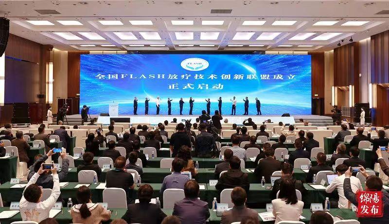 FLASH放疗是一种被称为“未来有望改变癌症治疗手段”的最新型的肿瘤治疗技术,是放疗领域最前沿的研究方向之一。2023年10月27日,由四川省委军民融合发展委员会办公室、四川省经济和信息化厅、四川省科学技术厅、四川省卫生健康委员会支持,中国核学会、中国医学装备协会主办,绵阳市人民政府、国家卫健委核技术医学转化重点实验室、中国工程物理研究院应用电子学研究所承办,西部放射治疗协会、绵阳市卫健委、经信局、科技局、绵阳市中心医院等单位协办的“2023年全国FLASH放疗研发暨治疗技术研讨会”在四川省绵阳市举办。大会以“交叉融合、协同创新”为主题,来自全国的专家学者围绕FLASH放疗技术和相关产业发展开展深入研讨交流。省委常委、绵阳市委书记曹立军、中国核学会秘书长刘建桥、中国工程物理研究院副院长王洋、杜祥琬院士等领导出席并致辞。来自全国的专家学者就FLASH放疗相关技术进行了热烈交流与讨论,并发布了推动成立全国 FLASH 放疗技术创新联盟绵阳倡议,成立了全国FLASH放疗技术创新联盟。