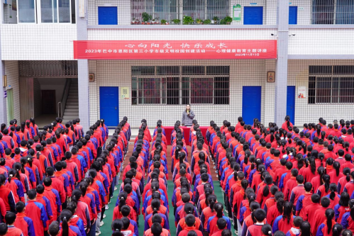 为培育学生自信、乐观、团结的心理品质,促进学生人格的健全发展,2023年11月13日,巴中市恩阳区第三小学组织开展了以“心向阳光 快乐成长”为主题的市级文明校园创建活动——心理健康教育主题讲座。