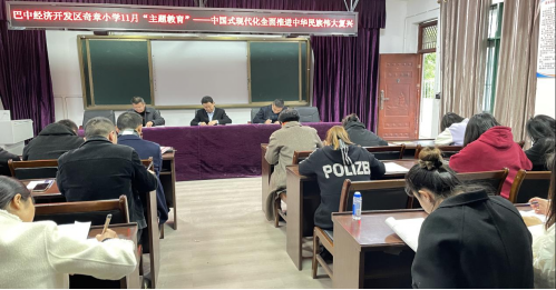 为深入贯彻落实学习习近平新时代中国特色社会主义思想,更好地开展主题教育,11月13日下午,四川省巴中市经济开发区奇章小学全体党员、共青团员、教职员工在会议室重点学习了“以中国式现代化全面推进中华民族伟大复兴”相关内容。