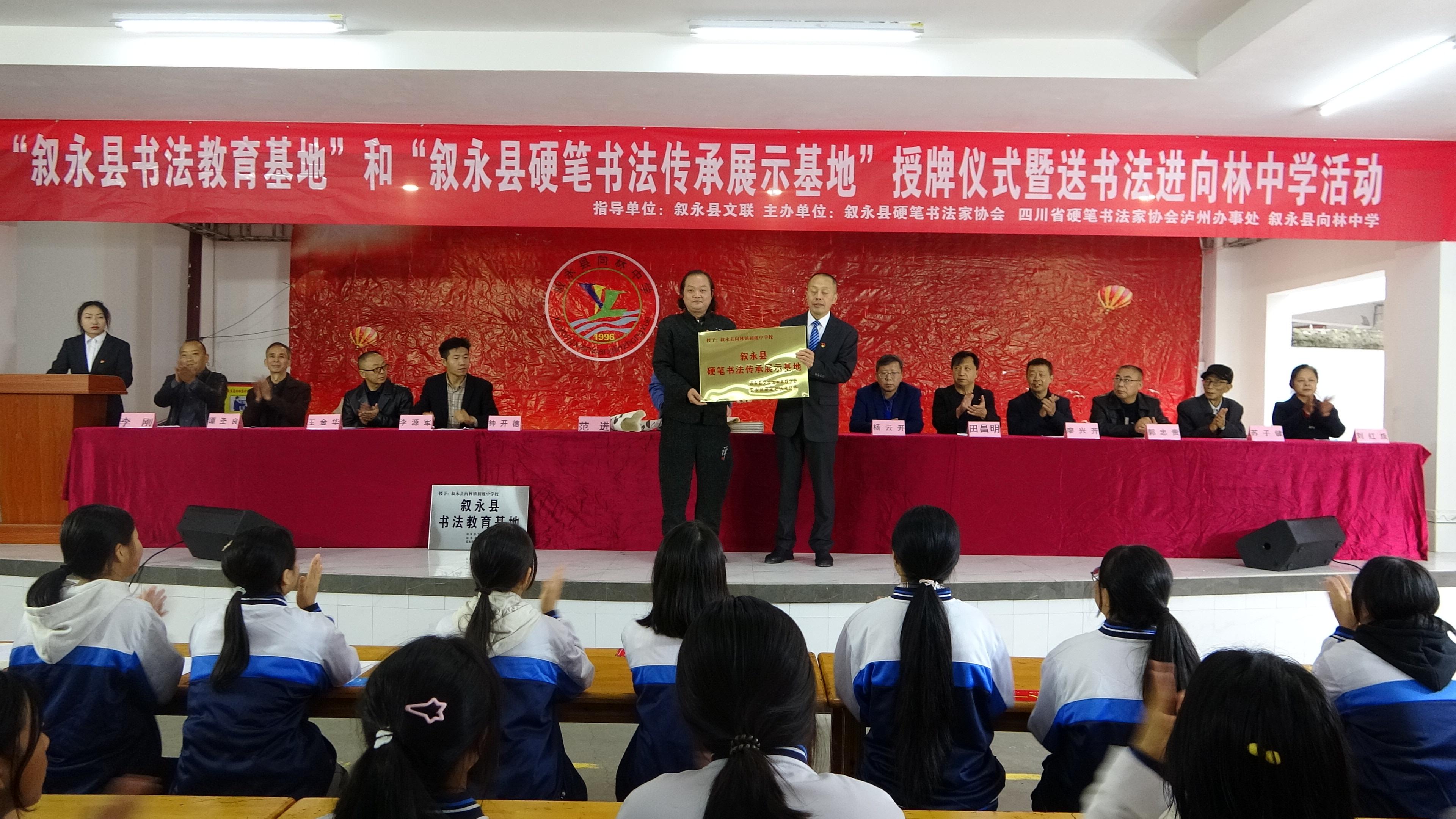 11月14日,四川省硬笔书法家协会泸州联络处一行走进叙永县向林镇初级中学校,开展“叙永县书法教育基地”和“叙永县硬笔书法传承展示基地”授牌仪式暨暨送书法进向林中学活动,叙永县硬笔书法家协会陪同。