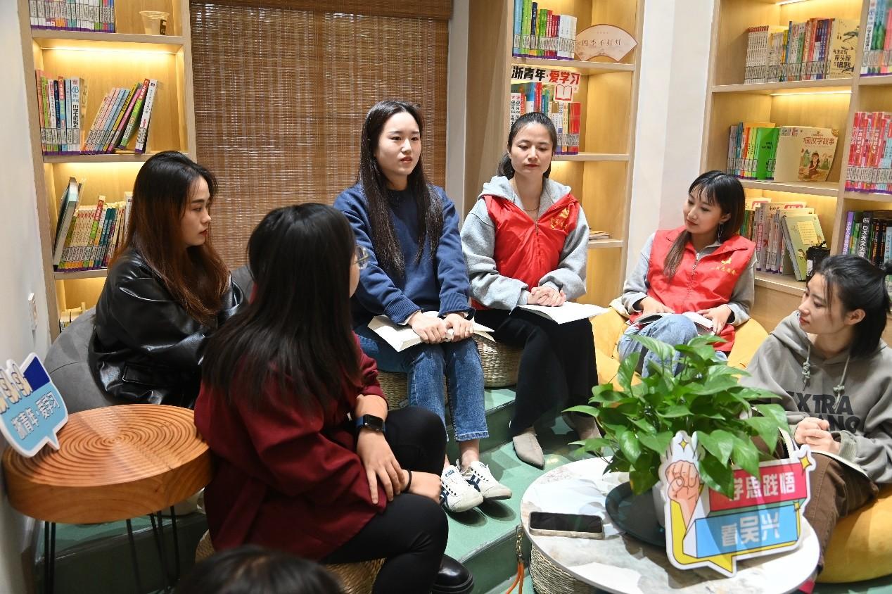 为推动学习贯彻考察浙江讲话精神走深走实,同时创新理论宣讲方式,11月8日下午,由吴兴区龙泉街道青言倾听理论宣讲名师工作室、龙泉街道学士宣讲团联合飞英街道宣讲团开展的青年理论宣讲走亲活动在巷往书咖、白鱼潭社区理论宣讲室等地精彩开讲。本次宣讲走亲创新理论宣讲形式让宣讲变得更加生动,也加强了青年宣讲员之间的经验交流,更是将党的创新理论成果播撒到基层一线。来自龙泉街道和飞英街道的6名基层理论青年宣讲员结合自身工作经历向居民群众展现党员干部的初心使命,以基层工作者的视角,用心、用情,将理论与基层实际相结合,把理论故事带进企业、送到群众身边,用好声音传播生动鲜活的基层故事,以深入浅出的形式展现理论宣讲的传播魅力。