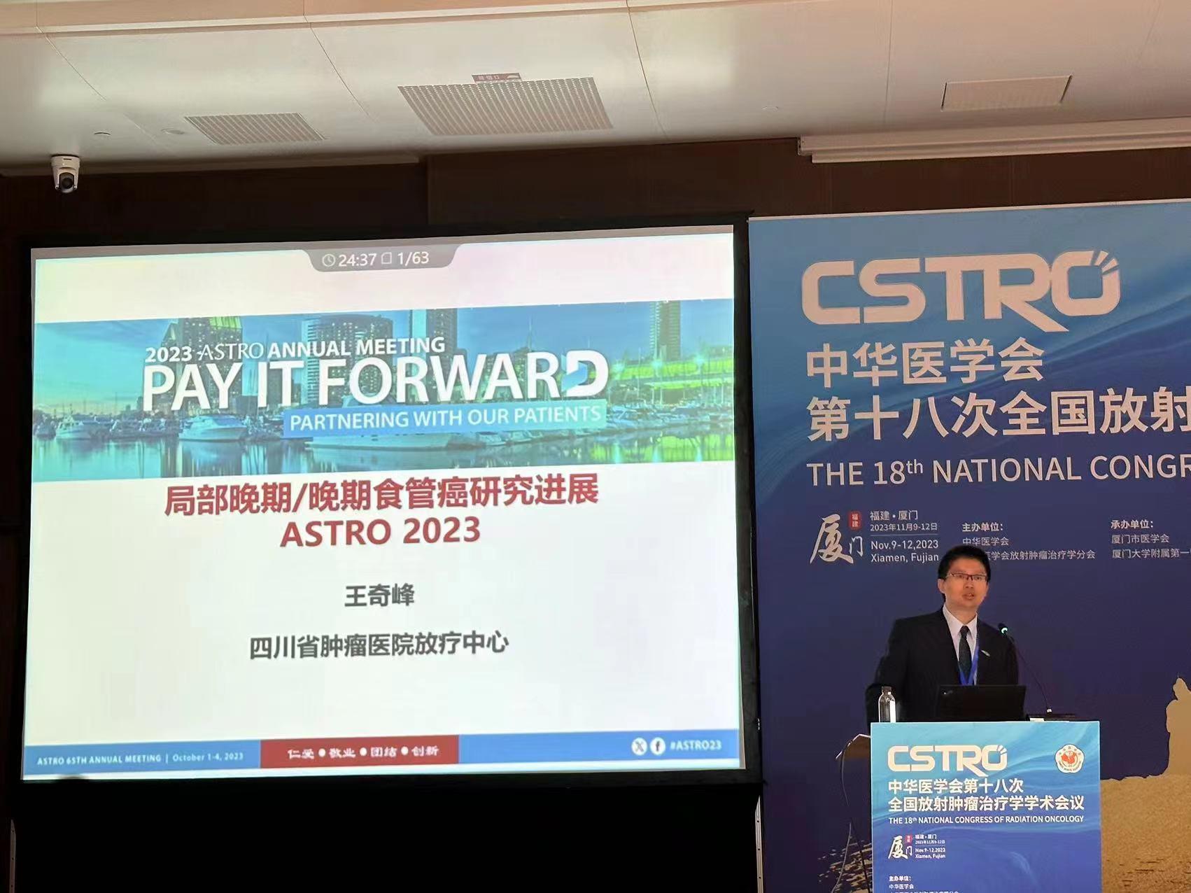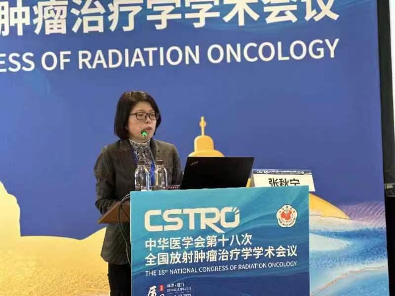 紧随其后,来自西部放射治疗协会青年委员会的众多青年专家也在本届大会中展示了西部放疗人的精彩。西部放射治疗协会青委主任委员、四川省第三人民医院的冯梅教授在神经肿瘤分会场做了题为《多模态影像技术在脑胶质瘤放疗中的应用》主题报告,在头颈部肿瘤分会场做了题为《头颈部鳞癌免疫联合放疗治疗进展及探索》主题报告;青委副主任委员、贵州医科大学附属医院/附属肿瘤医院苏胜发教授在胸部肿瘤放疗分会场做了题为《晚期非小细胞肺癌SBRT进展》主题报告;青委副主任委员、中国科学院近代物理研究所/兰州重离子医院张秋宁教授在粒子放疗分会场做了题为《中粒子辐射生物学研究进展》主题报告;西部放射治疗协会常委、青委委员、四川省肿瘤医院王奇峰教授在食管癌放疗专场做了题为《2023年局晚期和晚期食管癌ASTRO治疗进展》主题报告;另外,川北医学院附属医院马代远教授、内蒙古通辽市科尔沁区第一人民医院陈光烈教授、空军军医大学附属西京医院赵丽娜教授等多个西部放射治疗协会的青年委员也在积极参与到本次大会的学术交流中,向与会同行分享了西部放疗同行近年来在肿瘤放疗领域的最新研究成果。