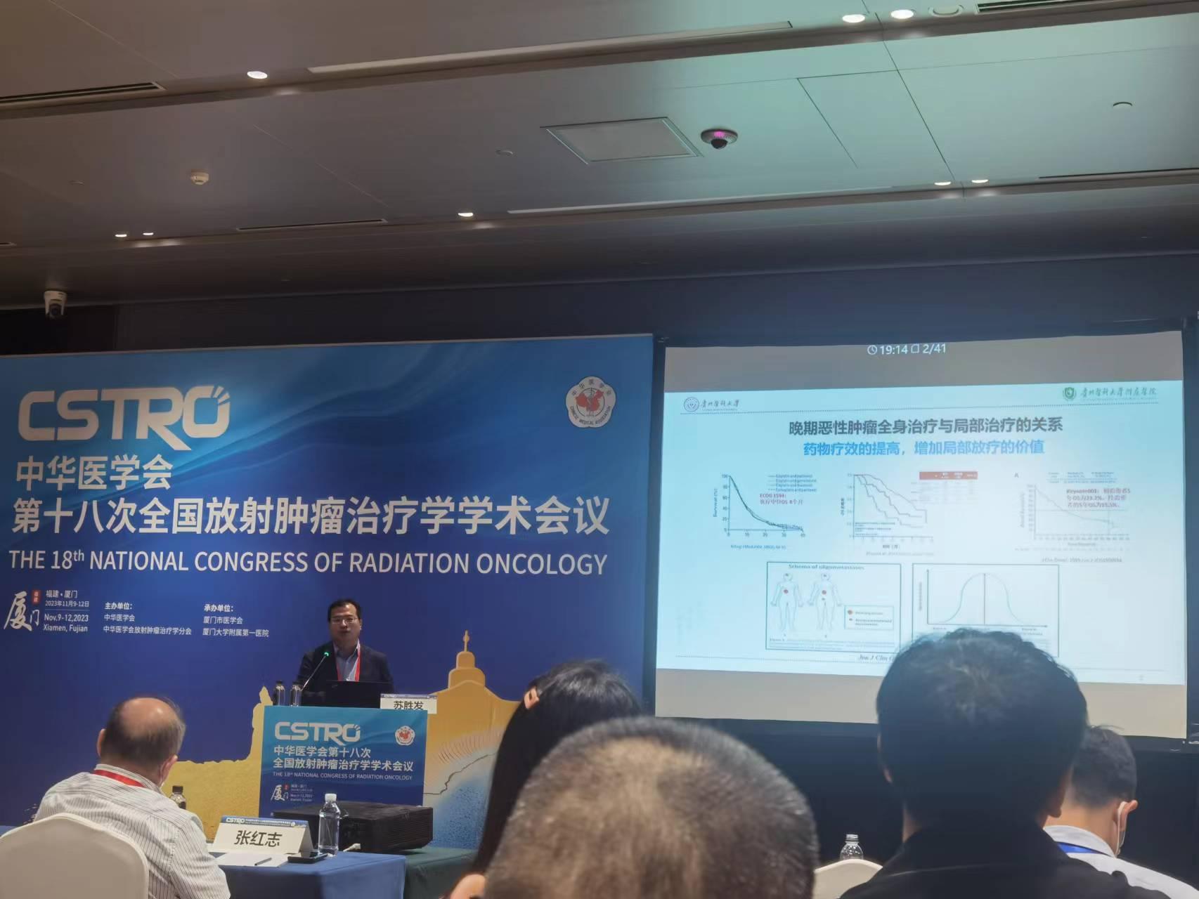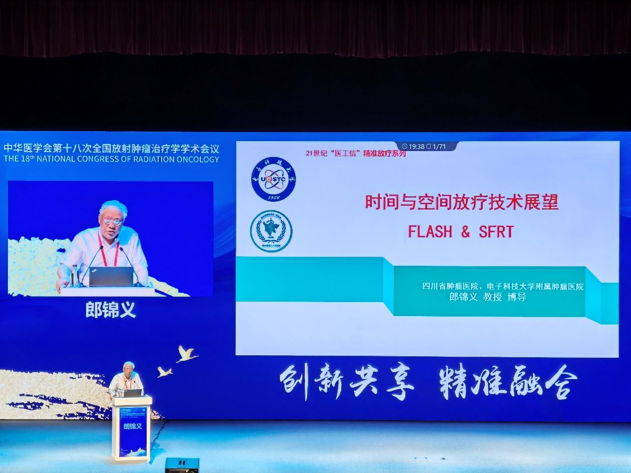作为西部放射治疗协会理事长,中华医学会放射治疗学分会第八届主任委员郎锦义教授在大会主会场做了题为《空间与时间分割放疗的展望与思考》的大会报告,向与会同行分享了Flash放疗,空间分割放疗的研究应用现状和未来前景。