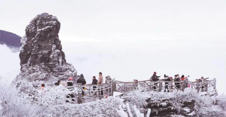 世界自然遗产地梵净山银装素裹,壮美如画,冬日雪景吸引游客流连忘返。伍卫东 摄