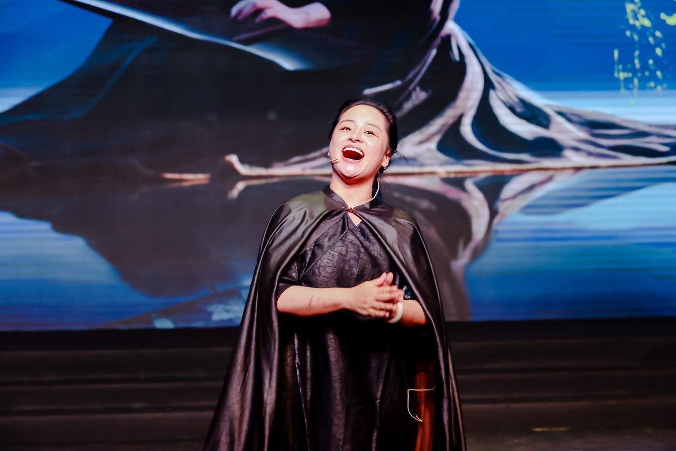 总策划、总导演李永超,音乐会唱诵者小珠悟义分别就音乐会创意源起、文化底蕴、艺术亮点、创作契机及作品特色等方面进行导演阐述和创作分享,并与著名弗拉门戈吉他演奏家段昌武、音乐鬼才啊丁等主创人员共同演绎了《云水谣》(微妙音)、《丝路》(长啸)、《忘机》(狮吼)三首代表性曲目,让在场观众提前领略“寻剑音声海”东方古韵唱诵音乐会的“音波疗愈”的韵律魅力,体会“声”与“心”双向奔赴的妙契。