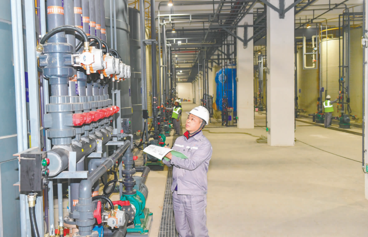 四川协鑫锂电年产36万吨磷酸铁锂储能材料项目现场,工人正在进行生产操作