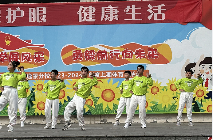 11月,学校特别开展“爱眼护眼,健康生活”主题朝会活动,六年级一班孩子《眼睛是心灵的窗户》的操舞朗诵,用自己的亲身经历向大家宣传护眼的重要,让同学们明白近视的不可逆和远离电子产品的意义,宣传推广较好的护眼方法。此次集体朝会,以爱眼护眼知识、舞蹈以及健康操的表演,生动、形象地给同学们宣传普及了科学用眼、预防近视等眼睛保健知识,强化了爱眼护眼好习惯,有效地增强了同学们的爱眼护眼意识。