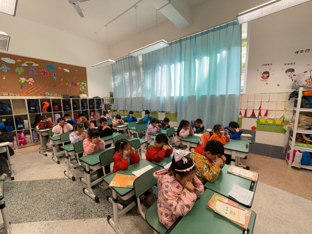 与此同时,各班级根据学生实际统一安装“坐姿矫正器”,帮助督促学生在每日的学习中养成良好的书写坐姿,预防近视。在教室的黑板最上方张贴正确书写姿势提示语:眼书距离一尺,胸与桌后缘一拳远,手距笔尖一寸,时刻提醒学生读写时保持正确体位和姿势。