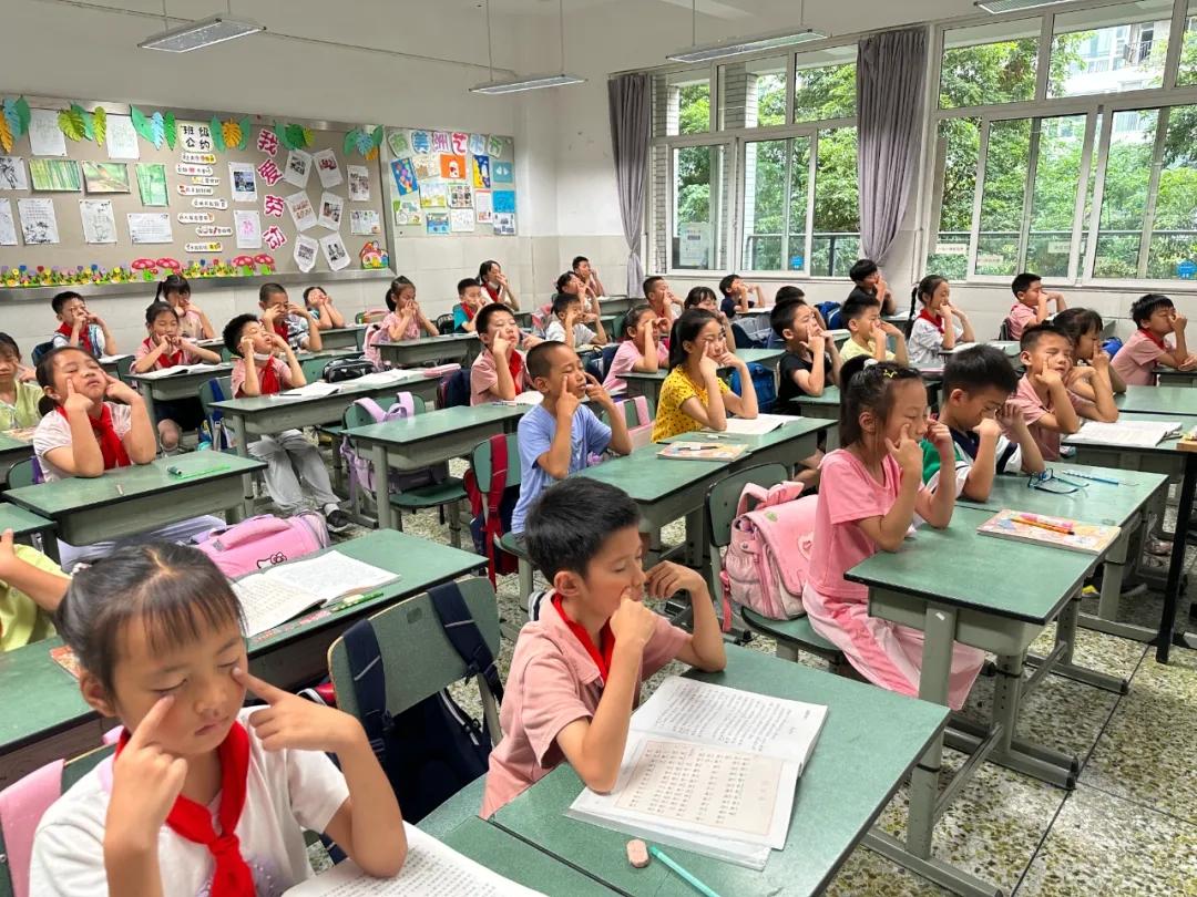 眼保健操可以放松人的眼睛。为了更好地引导学生关注眼健康,养成认真做眼保健操的好习惯,娇子小学开展“明眸护眼 共筑睛彩”眼保健操比赛。赛前,学校全体行政就学生视力保护工作进行专题会议研讨;体育组教师集体商议眼保健操比赛的规程及评分细则。在体育课上,体育老师再次带领孩子们学习眼保健操的正确做法,找准穴位、用对按摩手法。