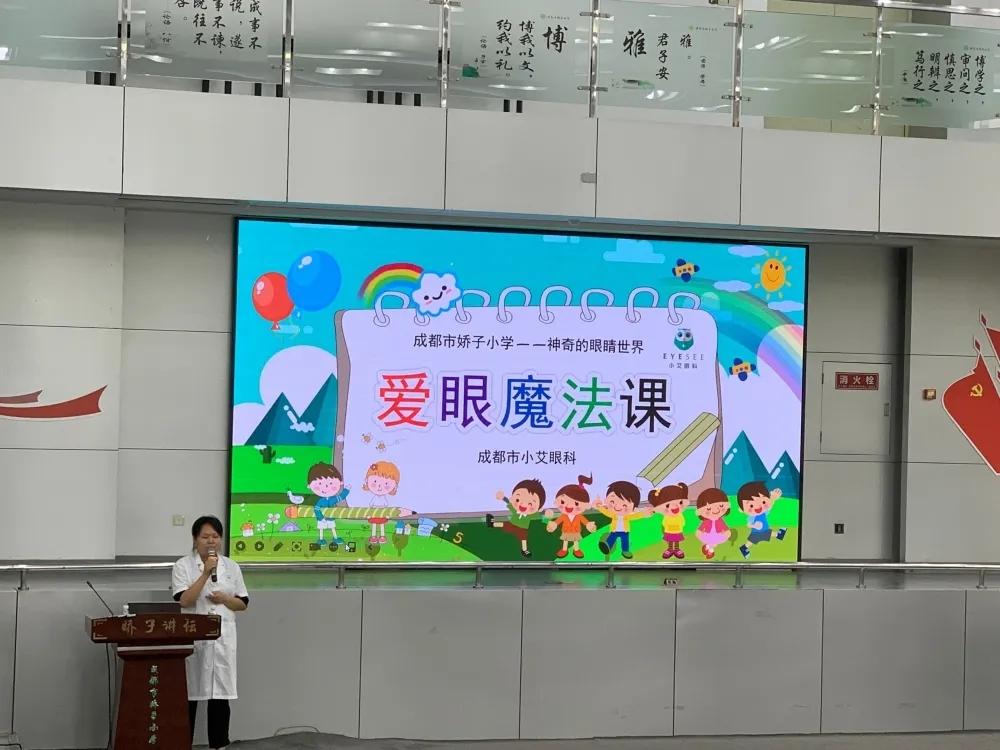 活动中,学校特邀成都小艾眼科何老师莅临学校开展《爱眼魔法大课堂》讲座。何老师根据小学生的年龄特点,以闯关游戏的形式教会孩子们认识眼睛的构造,了解近视眼形成的危害,学习如何保持正确的用眼习惯。通过学习,孩子们都充分认识到保护眼睛的重要性,用实际行动来保护自己的眼睛。
