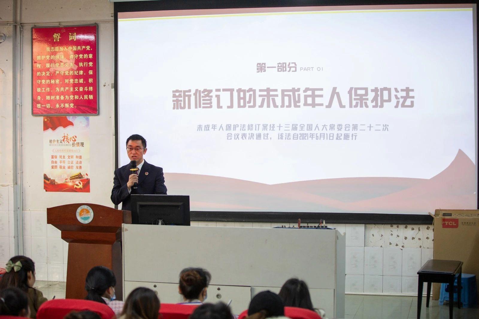 着力增强未成年人法治意识。党组成员带头主动走进中小学校开展“预防校园欺凌”“预防性侵害”“防范电信网络诈骗”“安全自护”等法治宣讲近40场,受众2万余人。着力不断扩大法治宣传覆盖面。通过“两微一端”发布涉未成年人普法宣传信息200余篇,制作法治宣传微动漫1部,拍摄法治宣传微视频2部,运用“线上”资源扩大普法宣传面,全力推进违法犯罪预防。着力提升法治校园建设内生力。5名党员领导干部担任呈贡区法治副校长,常态化进行法治校园建设指导,提升中小学校法治建设能力。