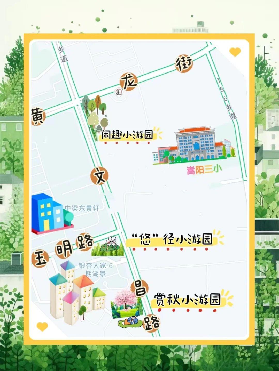 文昌路(文昌路与黄龙街交叉口到银杏人家6期路段)就有三个小游园,分别是闲趣小游园、“悠”径小游园和赏秋小游园。