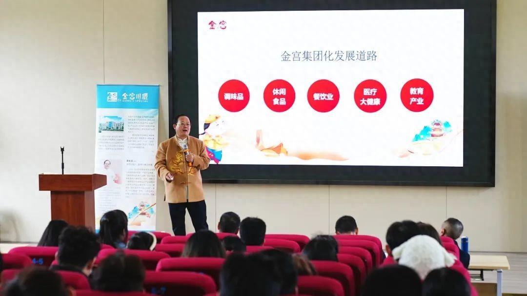 2023年12月6日,四川金宫川派味业董事长龚永泽先生走进四川名校西华大学,亮相校园招聘现场,为莘莘学子带来一场别开生面的择业宣讲,与学生分享金宫成功经验与心得,探讨就业前景,浅谈人生观、价值观和就业观。