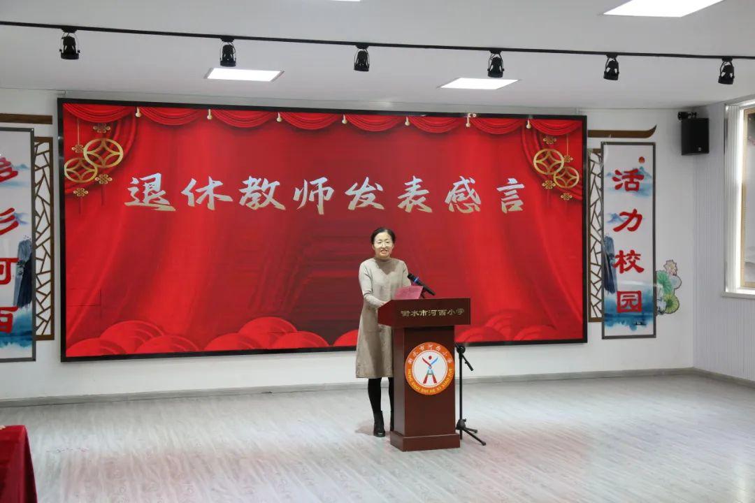 岁月长情 感恩相遇。仪式上,衡水市河西小学党支部书记、校长纪新发表致辞,感谢荣退教师用无悔的付出诠释河西人的使命担当,用奉献的热血为河西发展贡献力量。希望各位教师在退休后能够继续发挥余热,为青年教师树立典范,留下宝贵的精神财富。同时,也希望各位老师保重身体,享受生活,丰富生活体验,开启人生新篇章。