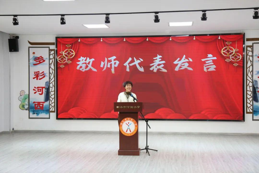 薪火相传,接续奋斗。老教师是学校宝贵的财富,是年轻教师奋发向上的楷模,他们的优良作风值得年轻教师效仿,他们的宝贵经验值得年轻教师学习。河西小学教师代表李丽春老师回忆了各位老师对后辈们在工作中的培养和生活中的关心,每一个点滴细节都让人倍感温暖。她表示将接过荣退老师们的接力棒,用行动践行师德,用担当书写未来,在教育热土上耕耘奉献,用满腔的爱与责任,努力为学校发展贡献自己的力量。