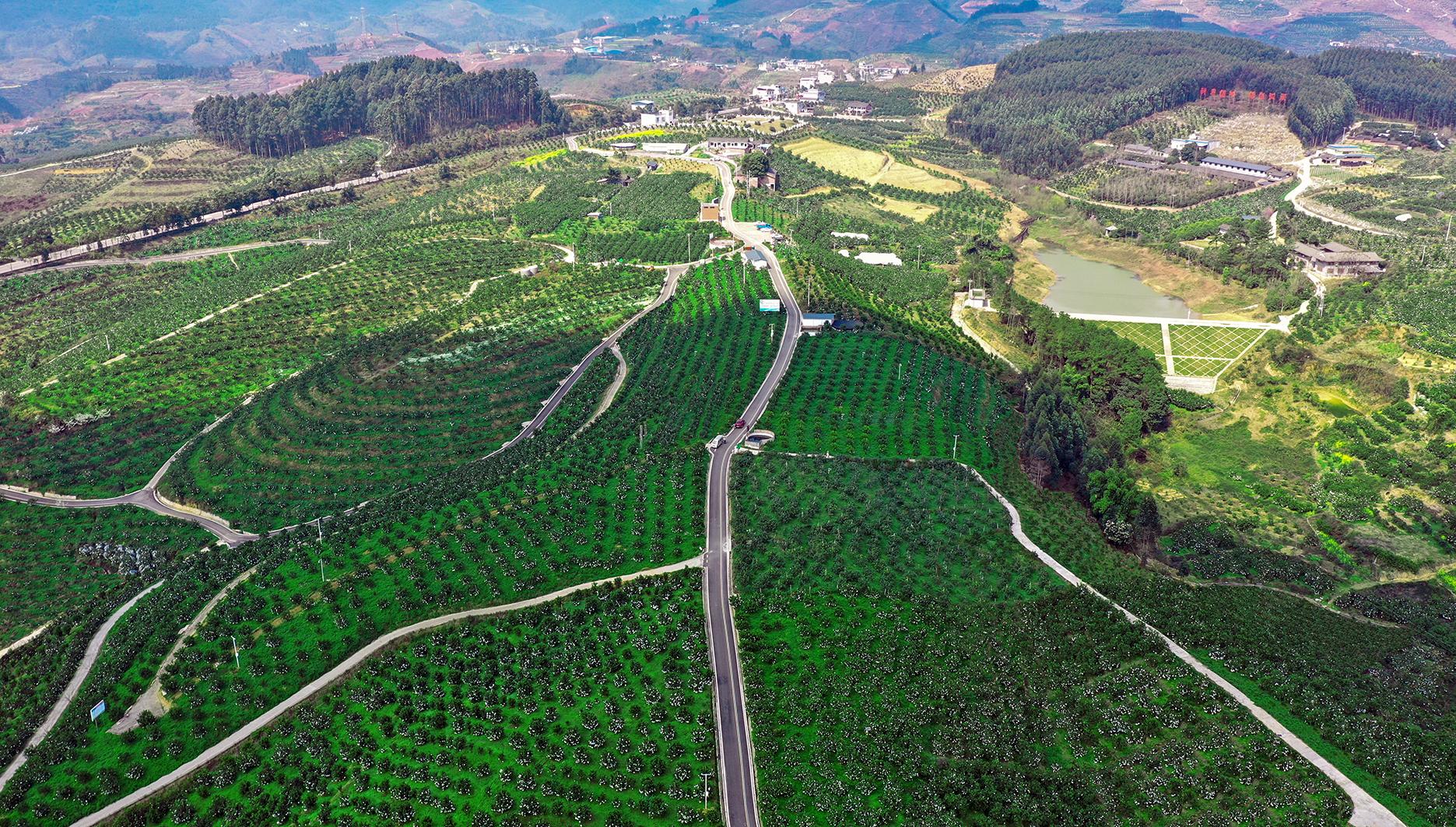 “从我们这4800亩发散出去的果园有10万亩,辐射带动周边14个村(社区),人均纯收入在三万元以上。”在红石村党总支书记倪川的带领下,记者领略了当地的果园风光。果园密布的村子里,水网、电网、路网、渠网、物联网早已联通,在航拍镜头下,标准化、规模化、机械化果园成了一道风景线。