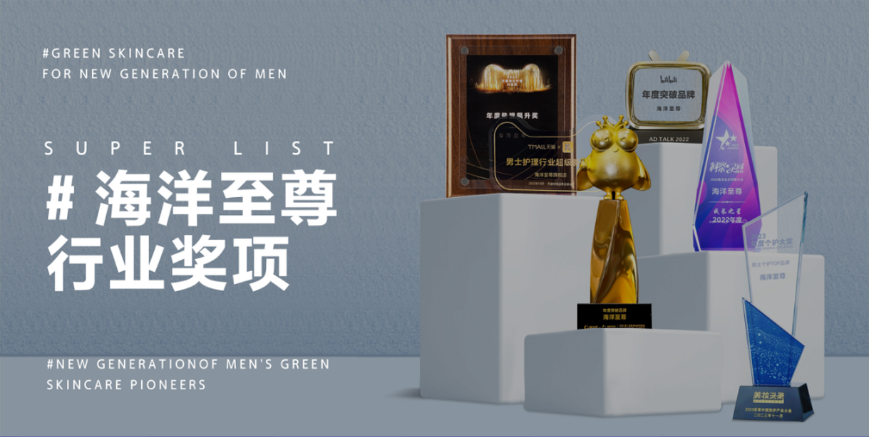 海洋至尊是专为亚洲男士的绿色护肤品,聚焦于男士护理赛道,致力于改善亚洲男士肌肤问题,唤醒肌肤活力。该品牌作为男士绿色护肤开创者,自2020年上市以来,短短3年多时间已走在男士新锐品牌头部梯队前列,席卷行业多项大奖。