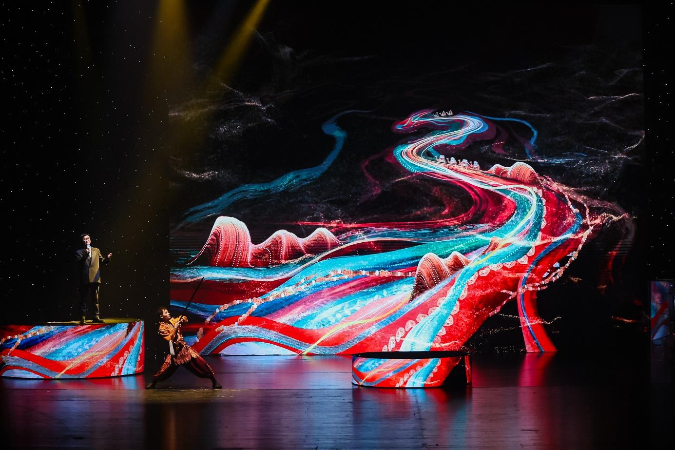 除此之外,来自成家班-龙韵武艺团的优秀武者将中华传统武术和古典舞有机结合,以刚柔并济的体舞、酣畅淋漓的双手剑、默契精彩的剑舞为音乐会量身打造了别具韵味的武舞表演。荣获文华奖服装设计奖、全国荷花杯舞剧大赛服装设计金奖的著名舞台服装设计师阿宽则为音乐会量体裁衣,阿宽对传统文化有着深厚积淀和独到见解,在此次的服装设计中充分融入了经典的中华文化符号与色调,既有清新自然的天光霓裳、也有浓墨重彩的炫彩华裳、还有清丽优雅的珠绣华服,极具艺术价值。