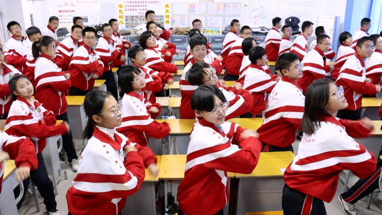 活动中,同学们挥手作势,鼓掌为拍,动作张弛有度,用双手舞出了欢快的节奏,舞出了昂扬向上的姿态,展现出了同学们朝气蓬勃、意气风发的精神风貌。