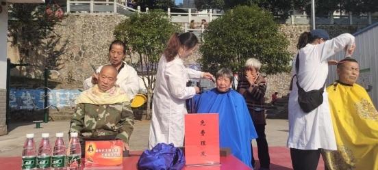 波洲村面向集镇老人组织免费理发活动 胡忠于摄