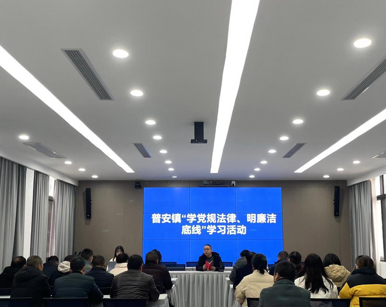 开展一次法制宣讲。普安镇组织召开“学党章宪法、筑法纪根基”暨“学党规法律、明廉洁底线”学习活动,重点学习《党章》《宪法》《中国共产党廉洁自律准则》《中国共产党问责条例》《中国共产党纪律处分条例》《监察法》《公职人员政务处分法》等应知应会知识。以宪法学习宣传为重点,广泛开展法治宣传主题教育活动,不断加强基层法治文化阵地建设,壮大基层普法队伍。