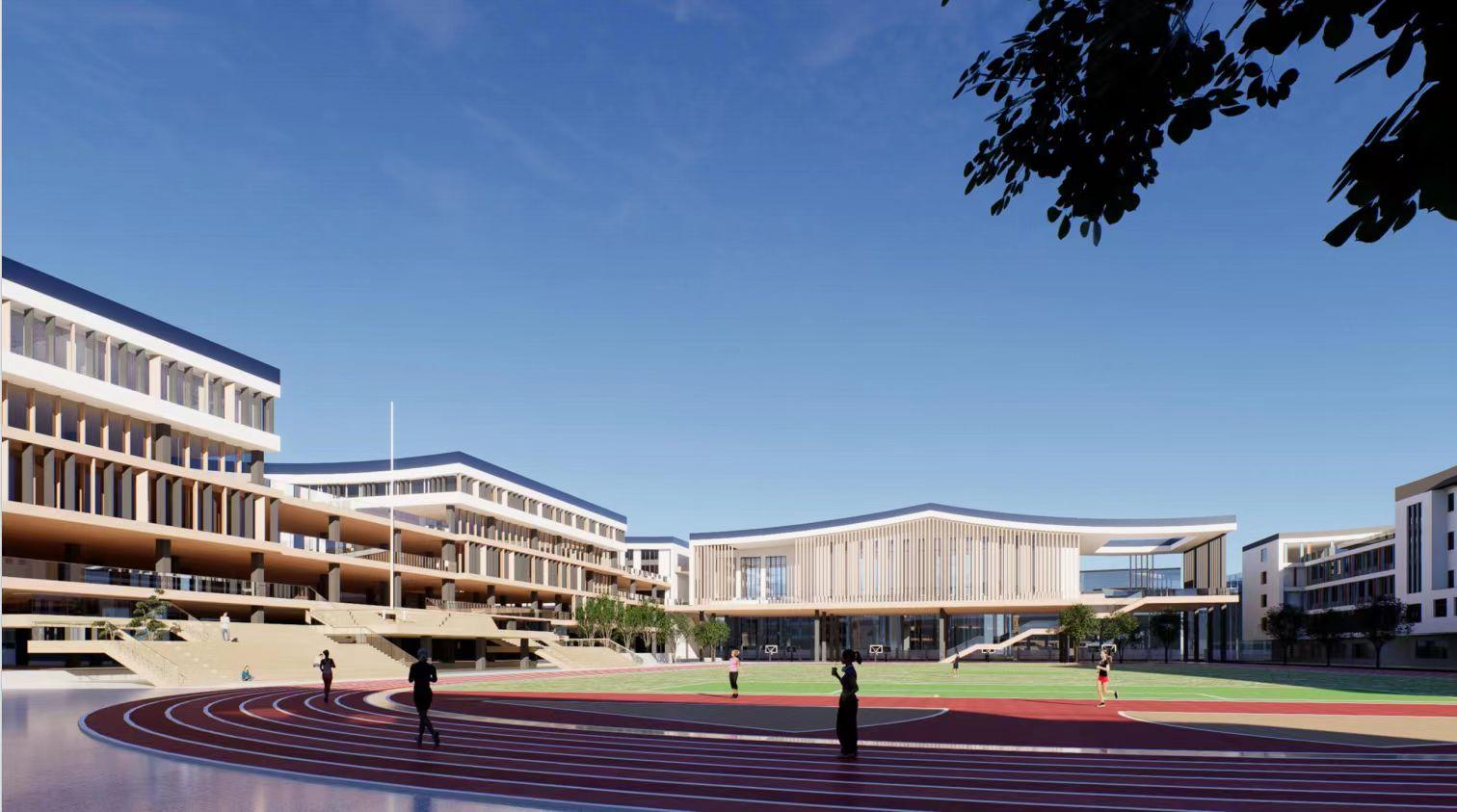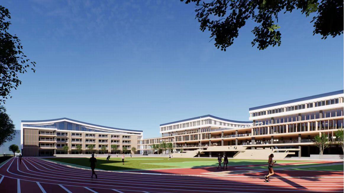 军马场学校初中部新建项目位于军马场学校东侧、军马场路南侧,规划总用地面积47174㎡,总建筑面积为47238.32㎡, 新建3栋教学楼、1栋食堂及综合办公楼、1栋体育及学术报告楼及配套设施。初中部建成投入使用之后,将进一步优化全区学校布局,极大缓解南城区初中生入学的压力,让适龄学生在“家门口”就能“有学上”、就能“上好学”。
